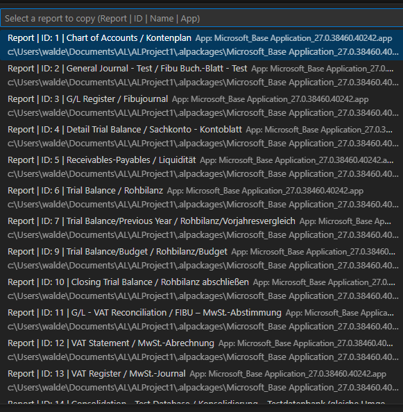 You will be presented with a list of all reports that you can copy including a translation of the report to make it easier to find the right one.
