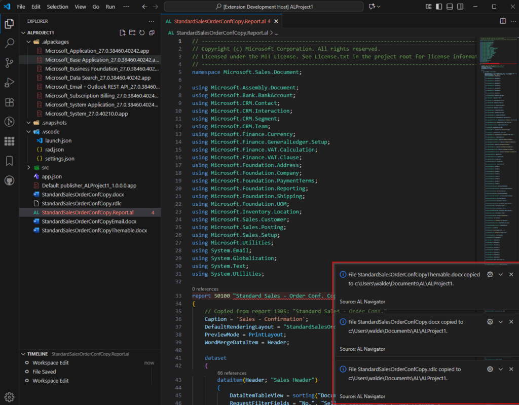 - Automatically extract the AL file and the layout (RDLC or Word)
